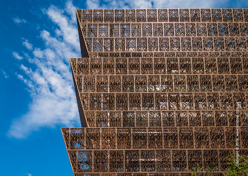 Команда архитекторов из «Freelon Adjaye Bond» и «SmithGroup» создали проект Смитсоновского национального музея афроамериканской истории и культуры (Smithsonian National Museum of African American History and Culture) в Вашингтоне. Главным дизайнером был David Adjaye, а ведущим архитектором – Philip Freelon. Невероятный экстерьер отличается бронзовой филигранной структурой, которая представляет собой смелую и незабываемую идею.