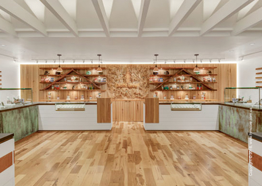 Полки и столы этого бутика отражают развитый вкус к хорошим вещам. Это – демонстрация будущего торговли марихуаной.