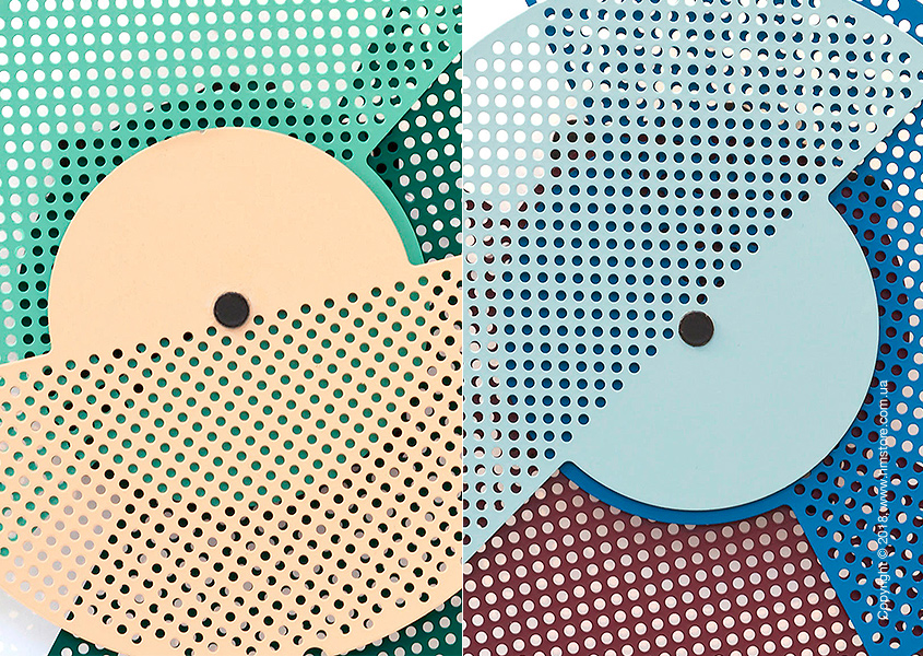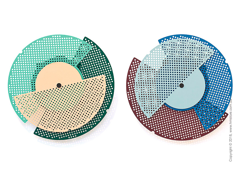 «Graphic Time» – это полностью функциональные часы, которые имеют оригинальную графическую форму, состоящую из трех полукругов, отражающих часы, минуты и секунды. Перфорированные компоненты вращаются с прохождением времени, создавая в течение дня разнообразные конфигурации. Часы доступны в двух цветовых комбинациях – «Nude/Lagoon/Pine» (светло-розовый/бирюзовый/зеленый) и «Slate/Sky/Aubergine» (синий/голубой/темно-лиловый).
