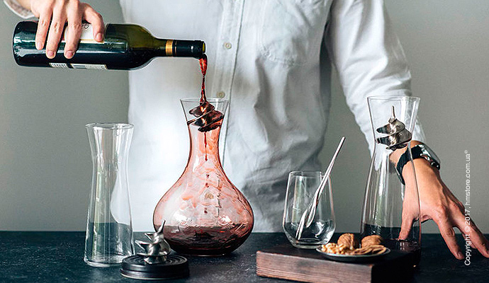 Олово – это металл с нейтральным вкусом, но при этом, по утверждению дизайнеров, он обладает способностью устранять горечь из вина и других напитков. Настоящие любители вина могут подтвердить, что если вино наливается через эту спиралевидную поверхность в стеклянный графин правильного размера для аэрации, это улучшает аромат, а также вкус вина. Помимо прочего, этот оригинальный предмет станет отличной темой для начала разговора и, возможно, причиной для открывания еще одной бутылочки вина, чтобы сравнить вкусы.