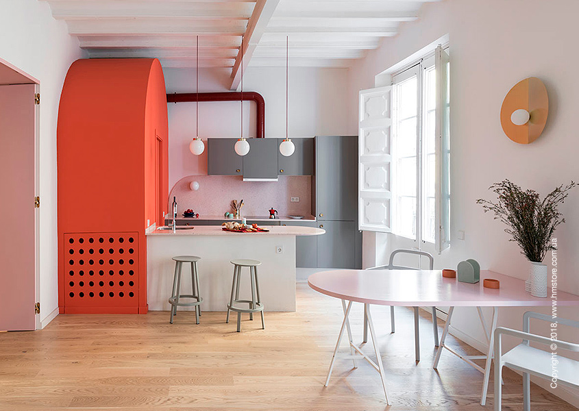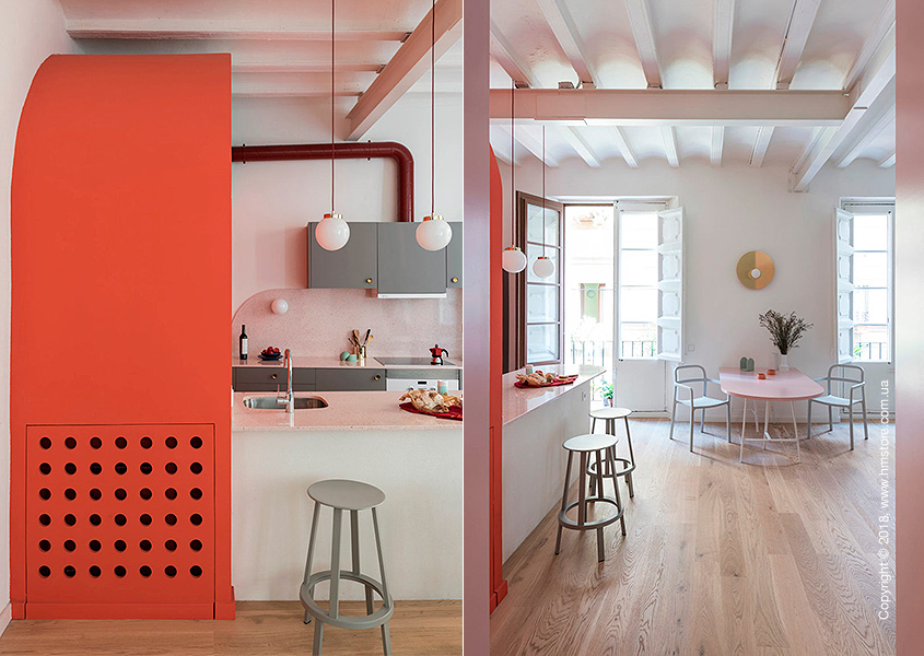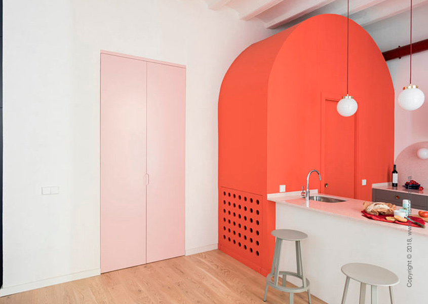 Расположенная в Борне, одном из старейших районов Барселоны, эта квартира площадью 65 кв.м. находится в здании 13-го века. Молодая итальянка, работающая в сфере моды, приобрела эту квартиру и наняла «Colombo and Serboli Architecture» («CaSA») для ее полного обновления. В результате трансформации получилась новая, более открытая планировка со сводчатыми потолками, яркой цветовой палитрой и оригинальными идеями.