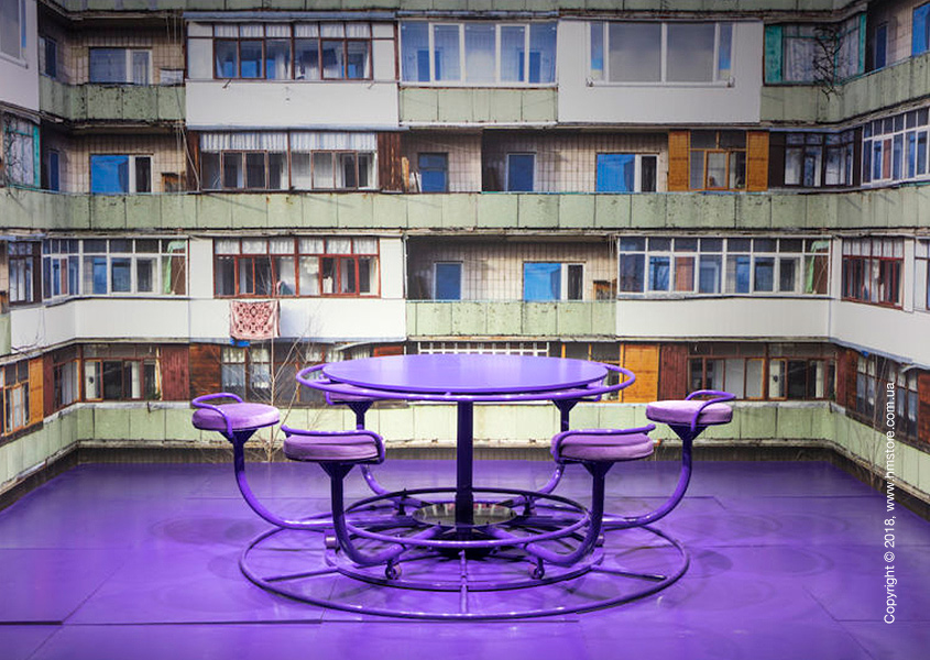 Дизайнер Гарри Нуриев (Harry Nuriev) из Crosby Studios презентовал полностью пурпурный вращающийся стол, навеянный его детством, а точнее каруселями, которые можно было увидеть на детских площадках его детства, а обои, которые служат фоном для выставочного экспоната, созданные компанией Wallpaper Projects, являются точной копией двора, в котором рос Нуриев.