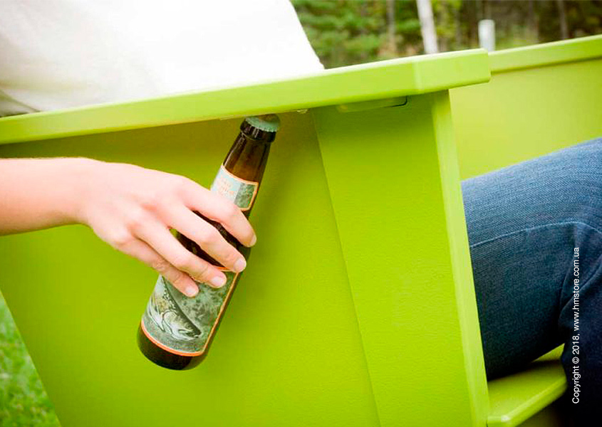 Стул отличается встроенной открывалкой для бутылок, так что, если у вас под рукой есть еще и маленький холодильник, вам просто не надо будет вставать. Идеально для ленивых летних дней!