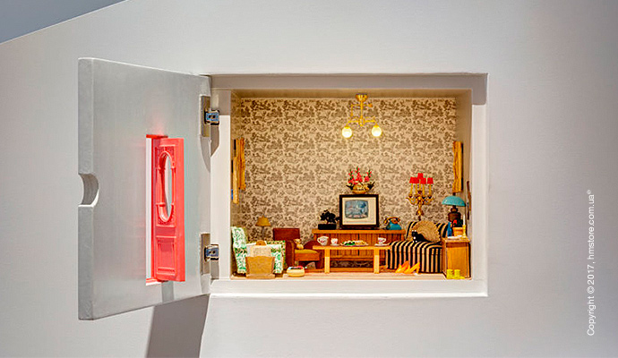 Кроме этого, этот шкаф имеет встроенное произведение искусства, созданное владельцем. Это – миниатюрная гостиная, скрытая за дверью.