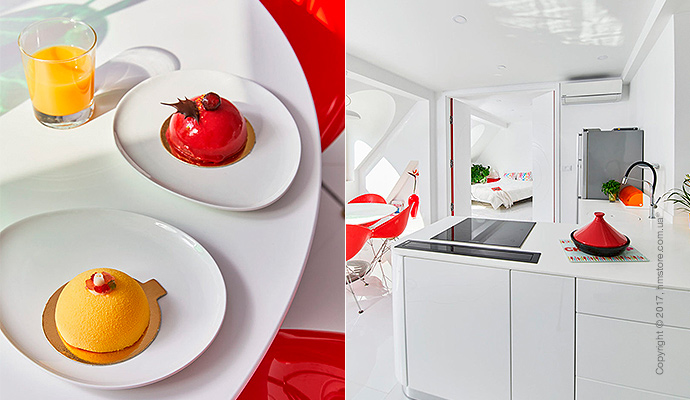 Гостиная отличается «зеленой» стеной, которая разбавляет практически полностью белый интерьер кусочком живой природы. Эта стена подключена к автоматической системе полива, поэтому хозяевам практически не нужно за ней ухаживать.