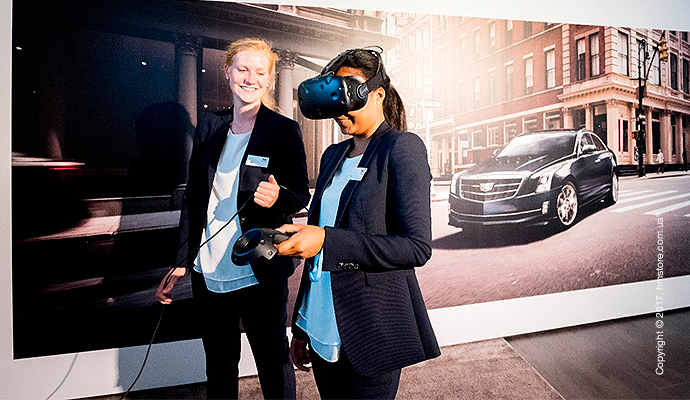 Cadillac предлагает совершенно новую возможность, которая не зависит от наличия автомобилей и даже от расположения салона. Доступные модели, отделку и опции можно подобрать с помощью специально запрограммированной виртуальной реальности «HTC Vive». Фактически, это – виртуальный выставочный зал, в котором представлена абсолютно вся линейка автомобилей Cadillac со всеми возможными опциями. Как только вы сделаете свой выбор, вы имеете возможность «походить» вокруг своего будущего автомобиля и рассмотреть его вблизи – внутри и снаружи, включая даже возможность сравнить отделку и цвет в разное время суток.