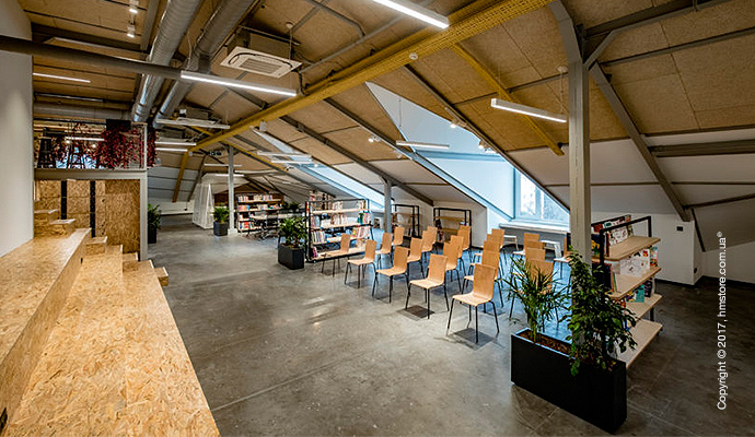 В результате получилось помещение, в котором можно увидеть места для бесед родителей и учителей, частные кабинеты для учителей, места для практического обучения, а также открытые зоны для взаимодействия. Площадь школы – 1700 кв.м., и здесь поместились все необходимые места для работы, обучения и встреч с визуально приятным интерьером.