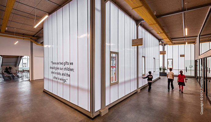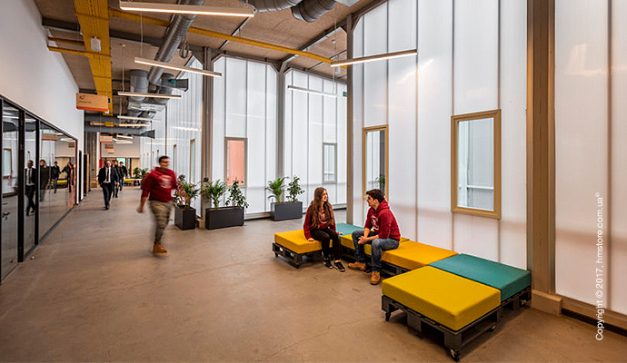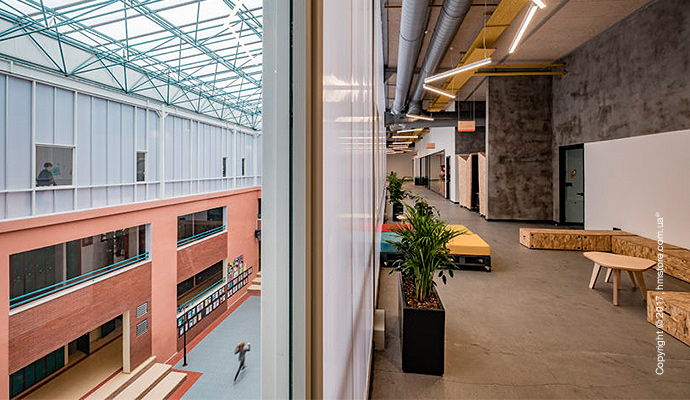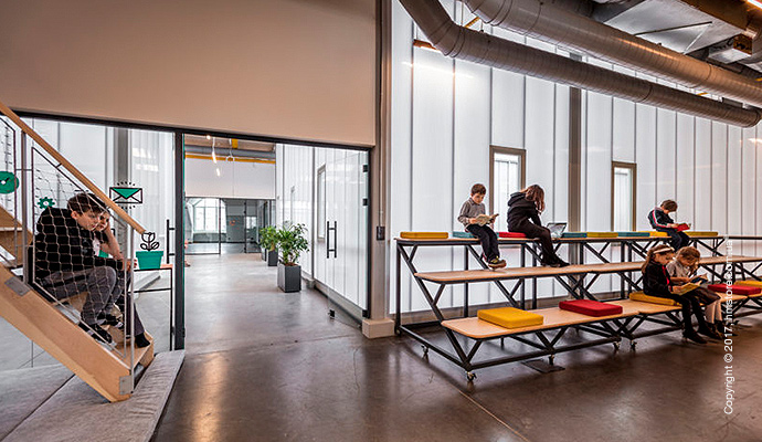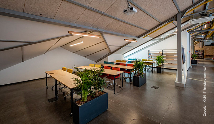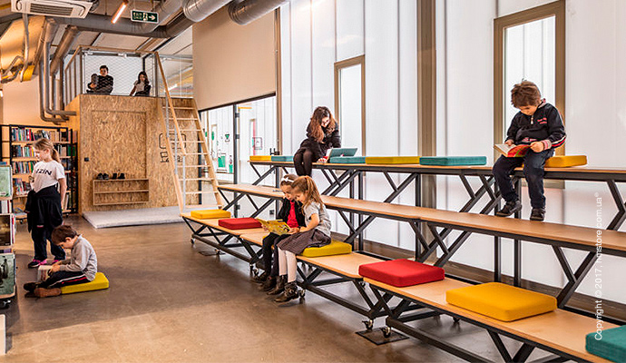 Кроме того, было очень важно использовать модульную мебель, благодаря чему появилась возможность менять обстановку в разных помещениях в зависимости от потребностей учителей и учеников.
