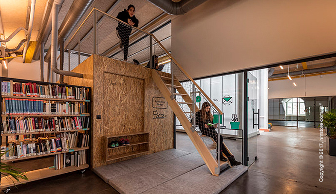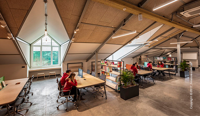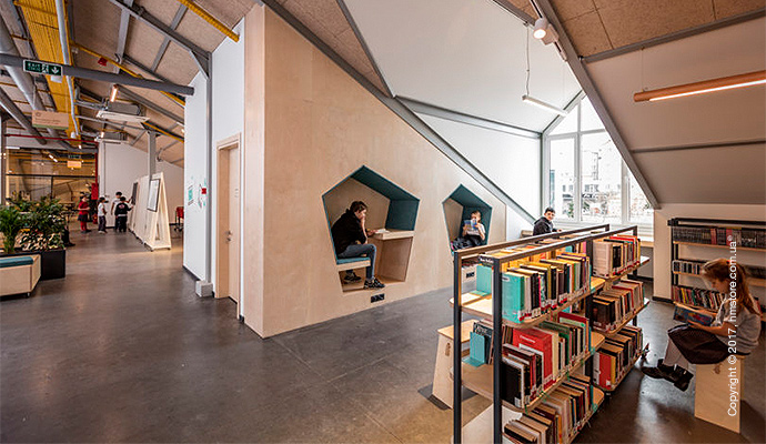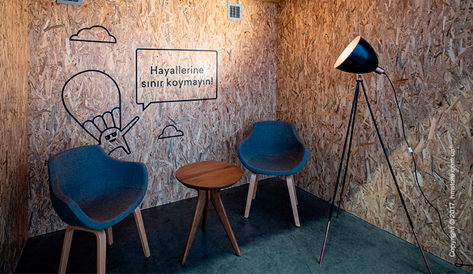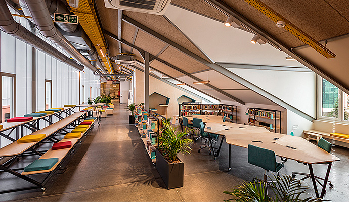 Компания «ATÖLYE» получила задание создать школу в Стамбуле, которая бы выходила за рамки обычного учебного учреждения. Эта частная школа должны была отличаться средой, способствующей проблемно-ориентированному обучению через современный опыт. Поэтому дизайнеры воспользовались свободным верхним этажом и превратили его в учебную лабораторию. Прежде чем взяться за этот проект, дизайнеры провели множество исследований и изучений информации, полученной от школы и учителей.