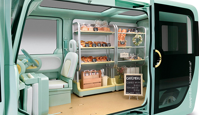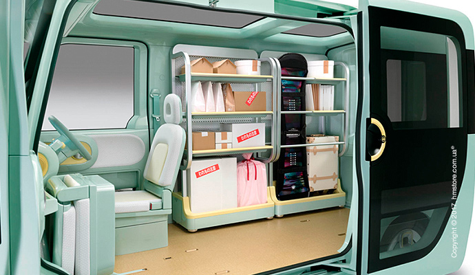 Еще одной интересно, и немного причудливой новинкой стал концепт DN Pro Cargo – четырехместный фургончик на колесах с просторным и универсальным интерьером, который предлагает множество разнообразных конфигураций, включая передвижные магазинчики.