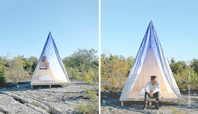 Этот кемпинг расположен на шведском острове Готланд. В этом году было предоставлены новые палатки для одного или для пар – небольшие убежища, построенные из фанеры и древесины с нейлоновой дверью.