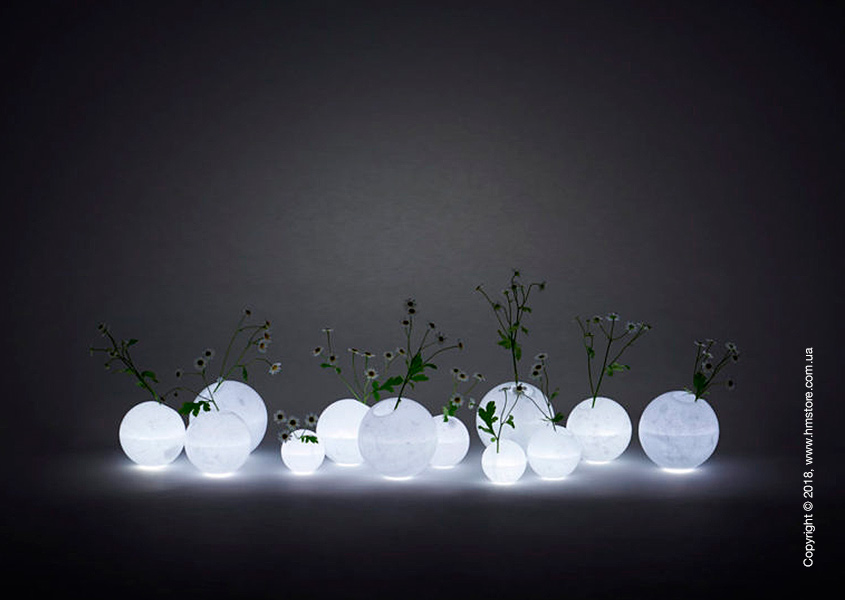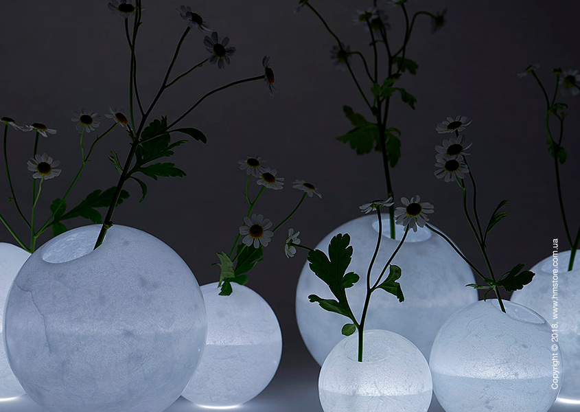 Disguise – это целая коллекция шаровидных ваз, созданных из нескольких слоев воска. Из-за того, что материал распределяется внутри вазы, она имеет текстурную внутреннюю поверхность. А когда вы наливаете в нее воду, ваза начинает «пульсировать» светом благодаря светодиодной лампе, расположенной внизу.
