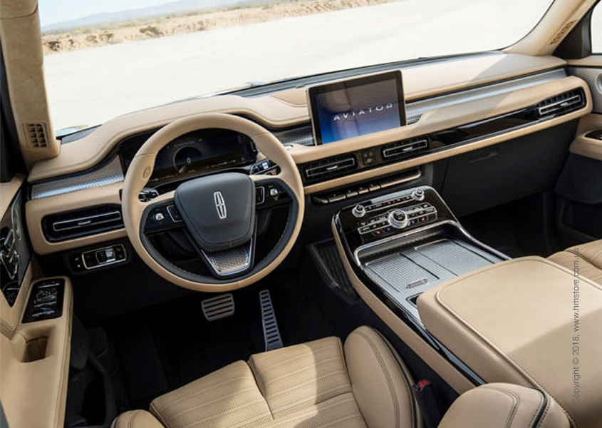Дизайн Lincoln Aviator отличается не только снаружи, но и внутри. Это – просторный SUV, в интерьере которого учитывается экономичность и экологичность, при этом максимум внимания уделяется комфорту и удобствам, которые сейчас ассоциируются с сегментом роскошных автомобилей.
