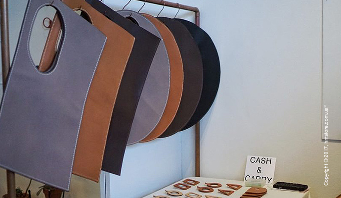 … кожаные изделия с монограммами, которые печатались на месте, от «Capsule».