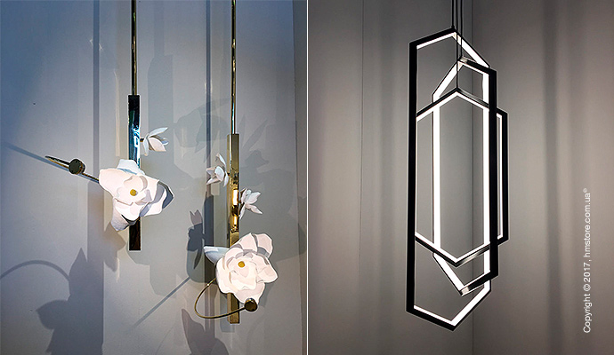 Просто великолепно выглядит огромная подвесная лампа от «Studio Endo». Так же как и подвесные лампы от «PELLE».