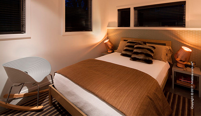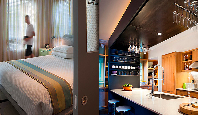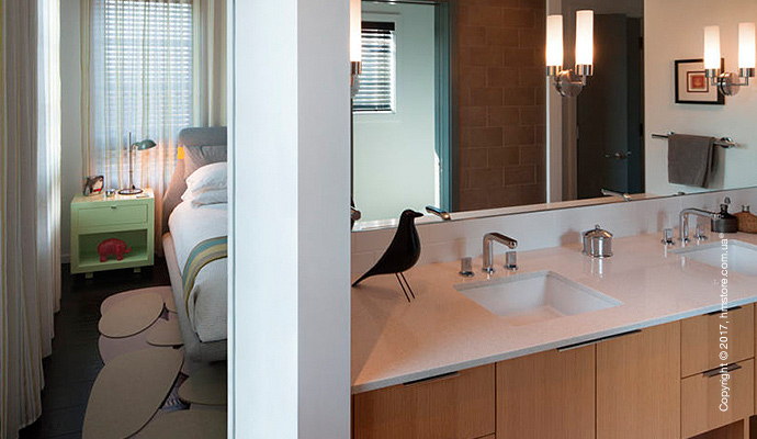 Наверху находятся спальни, которые отличаются небольшим размером, поскольку все равно большую часть времени семья проводит внизу.