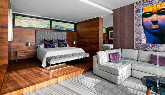 На втором этаже находится хозяйская спальня с собственной террасой и видами на горы и океан.