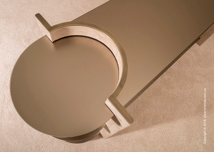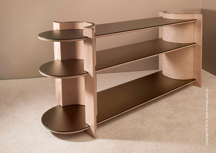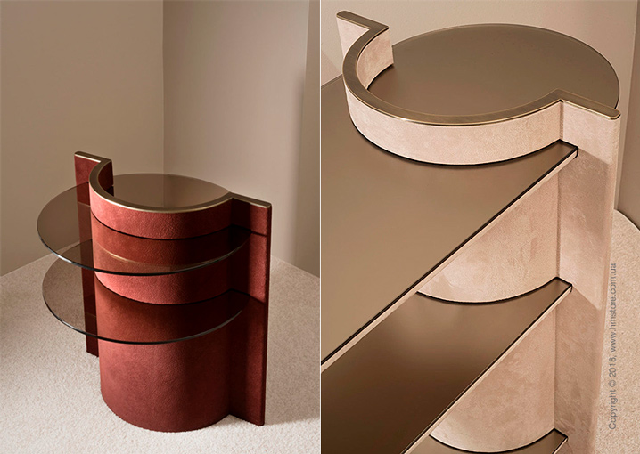 «Torus Collection» состоит из журнальных столиков и полок, которые выполнены из изогнутой фанерной древесины, «завернутой» в микрозамшу, благодаря чему обычно гладкий материал приобретает текстуру и ощущение тепла. Все это сочетается с бронзированным стеклом и состаренной бронзой. Эти предметы выглядят неподвластными времени и элегантными.