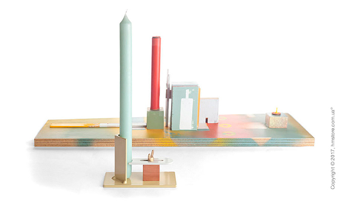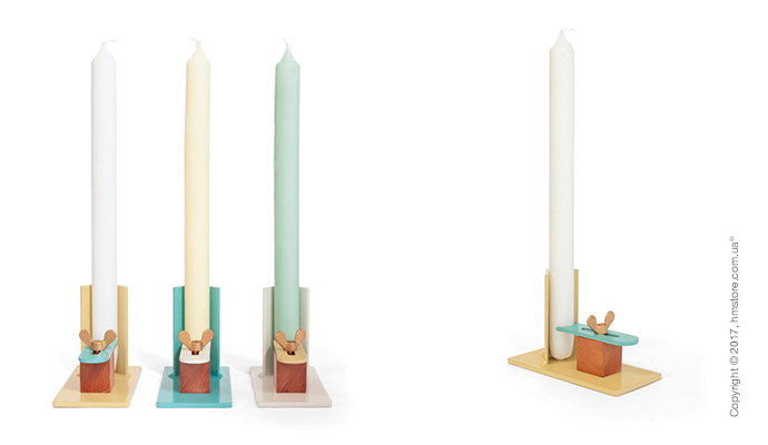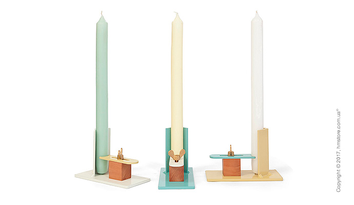 Свеча устанавливается на металлическое основание, а затем фиксируется пластиной в контрастном цвете с помощью винта. «Fixum» доступен в трех комбинациях из грязно-белого, зеленовато-бежевого и пастельно-бирюзового цветов.