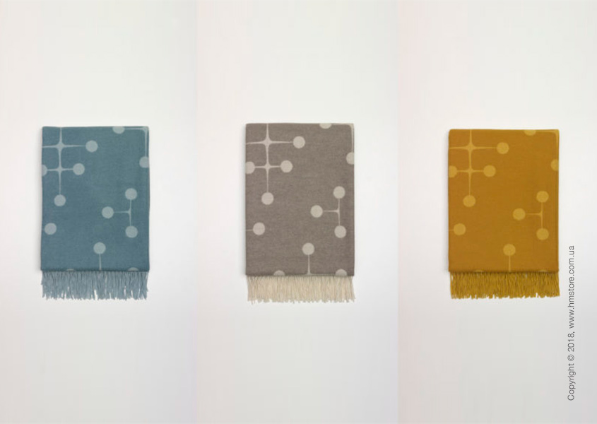 В холодное время важно быть в тепле, а для этого идеально подойдут покрывала «Eames Wool Blanket», которые доступны в синем, сером и горчичном цветах, вдобавок к классическим узорам в точку на черном и белом фоне.