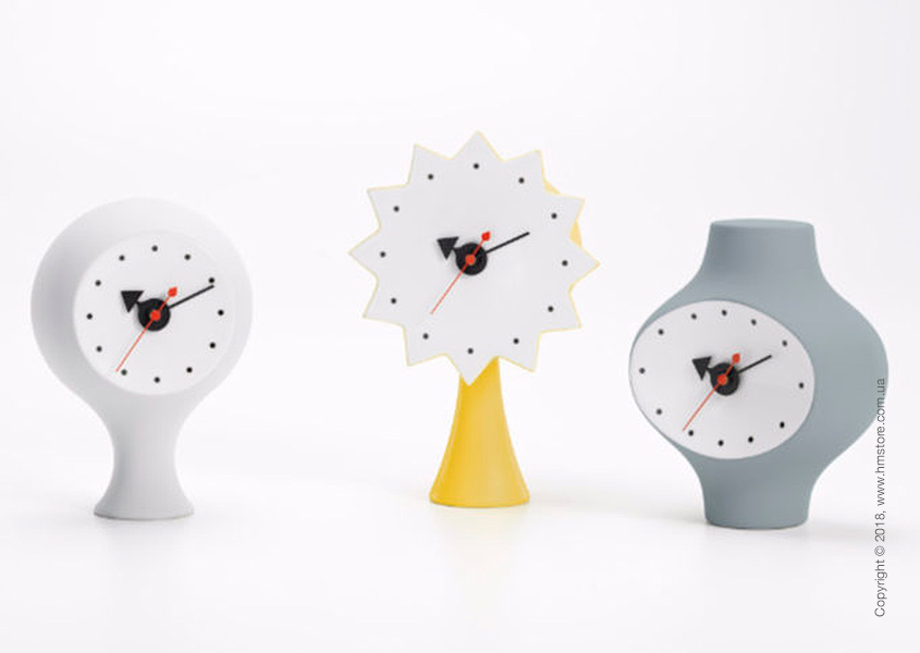 «Vitra» выпускает часы «Ceramic Clocks» от Джорджа Нельсона, выполненные из фарфора, которые доступны в целом разнообразии глазурей, а также настенные часы «Wall Clock» из прекрасной древесины вишни.