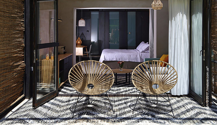 Постельное белье, полотенца и мебель в отеле выполнены из натуральных материалов и предоставлены компанией «Coco Mat».