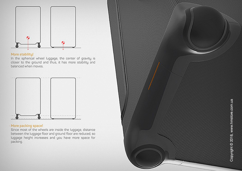 Самым идеальным вариантом для тех, кто часто путешествует на самолете, будет багаж, который не будет шататься в вашей руке, пока вы бежите по аэропорту, опаздывая на самолет, и будет защищен от любых повреждений. Дизайнер Mojtaba Hosseini создал багаж «Spherical Wheel Luggage», который отличается качеством и прочностью. Этот чемодан может похвастаться большей устойчивостью, вместительностью, возможной нагрузкой и давлением, чем любые другие варианты, доступные на рынке.