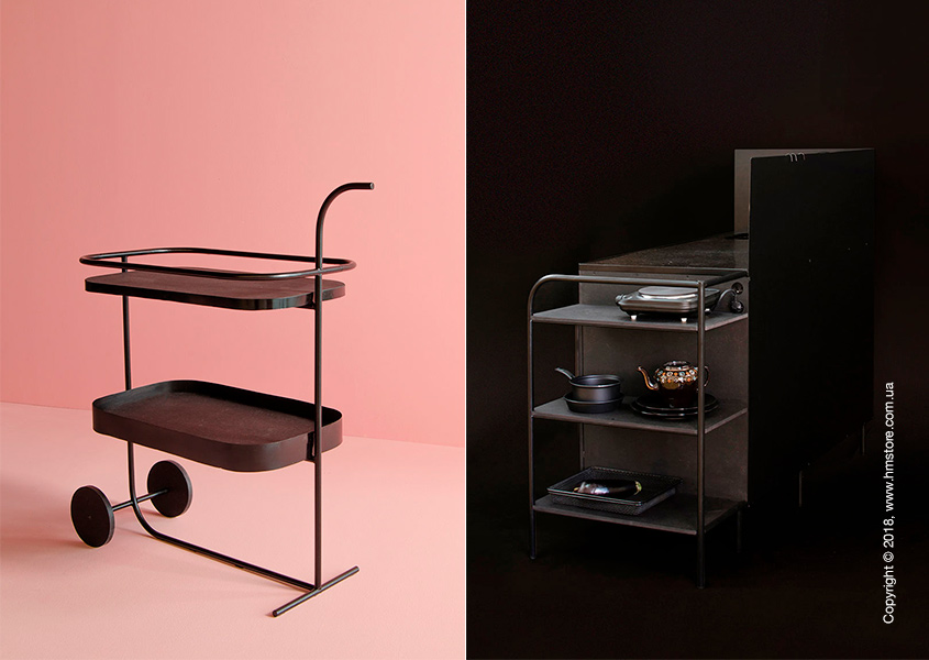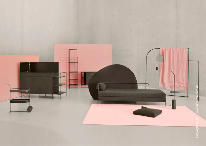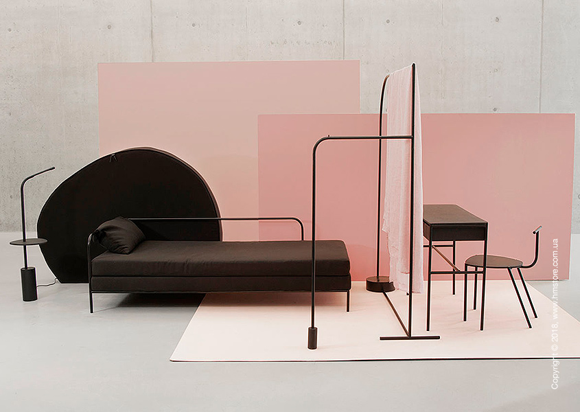 Дизайн этих предметов отличается утонченностью и линейности. В них сочетаются разные материалы, включая стальные трубки с порошковым покрытием, дерево, гречневая крупа (для наполнения подушек). Для гармоничности коллекции все предметы выполнены в черном цвете.