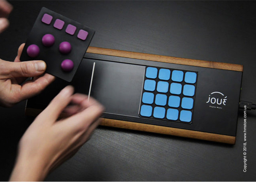 «Joué» – это модульный MIDI контроллер с полифонической сенсорной платформой, которая работает с целым рядом модулей с цветовым кодом. Музыка на этом инструменте создается через прикосновение и цвет.