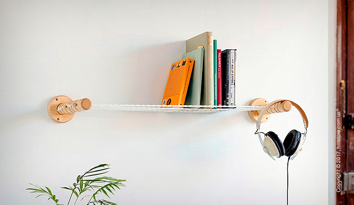 Может быть, полка «Xanxan» и не для антиквариата или трофеев, но это точно прекрасная полка для книг, журналов и многого другого, которая будет однозначно привлекать любое внимание. Технически, это не полка, а платформа, созданная из нескольких канатов, связанных по краям. Их натянутость можно настраивать так, чтобы под грузом предметов они не провисали.