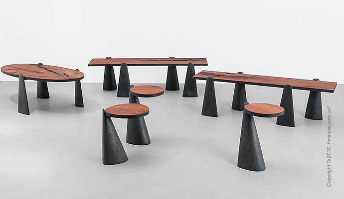 Бруклинская студия «Uhuru» совместно с дизайнером из Парижа Констанс Гиссе (Constance Guisset) недавно выпустила в свет коллекцию столов. «Alca Collection» состоит из четырех предметов, которые прекрасно объединяют разные таланты дизайнеров. Эти яркие столы имеют столешницы из обожженной ореховой древесины и треугольные ножки из чугуна.