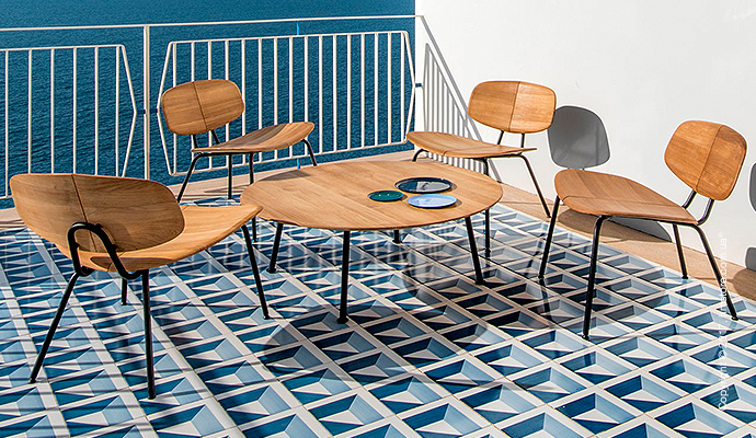 В коллекцию «Agave» входят стулья и столы. И хотя они созданы специально для улицы, в интерьере они также будут смотреться утонченно. Напоминая атмосферу 50-х годов, эти предметы имеют черное металлическое основание и деревянные сиденья, спинки и столешницы. Кроме того, вы можете увидеть в предметах из коллекции специальные неглубокие желобки, созданные специально для хорошего стекания воды.