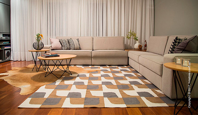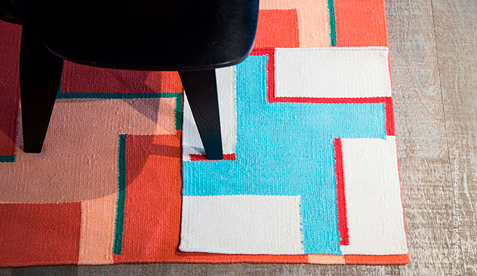 Современные графические узоры создаются из 100% хлопка на ткацких станках с ручным управлением. Вы можете выбрать любой (или несколько) из семи дизайнов, и он будет создан в любом размере, путем сложения кусочков по 50 см каждый. В результате вы получите яркий ковер без видимых соединений.