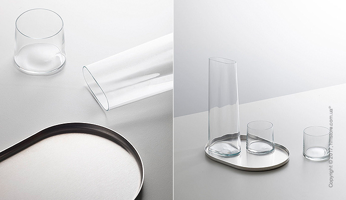 «Dual» – это набор из графина и стакана, созданный дизайнерским дуэтом «Relvão Kellermann». Графин отличается асимметричной формой, позволяющей более удобно наливать напитки в стакан.
