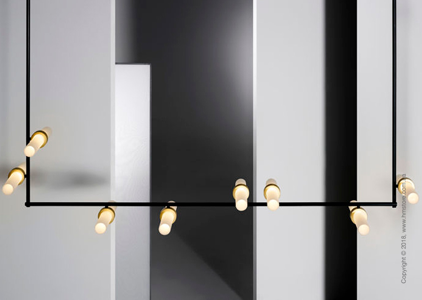 Каждый компонент этой лампы может быть прикреплен абсолютно в любом месте и направлен абсолютно в любом направлении. Кроме того, можно использовать несколько реек, устанавливая их горизонтально или вертикально, создавая таким образом целые произведения искусства. Эти подвесные лампы, а также рейки можно дополнять, уменьшать или перемещать в зависимости от своих предпочтений.