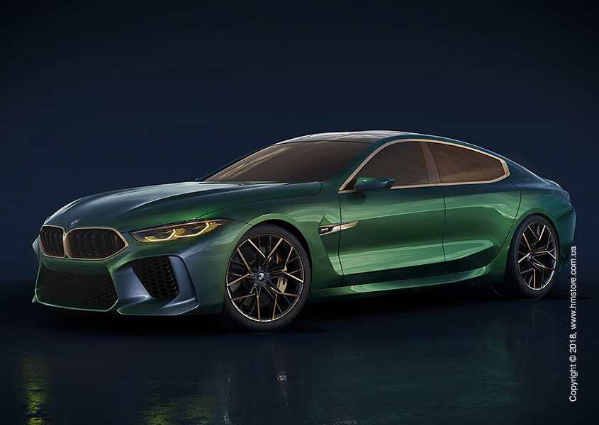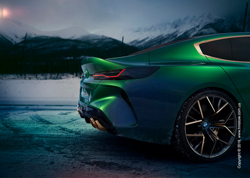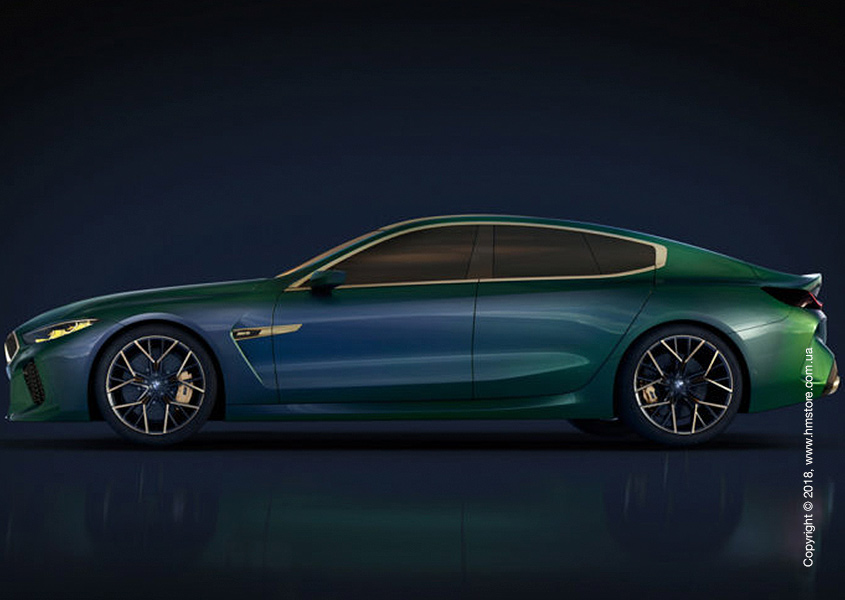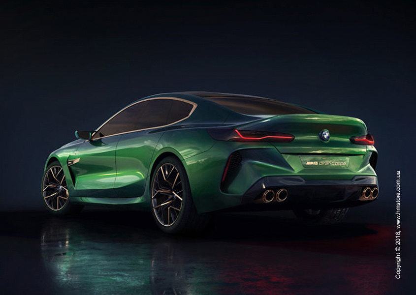Concept M8 Gran Coupe отличается четырьмя дверьми, сужением линии крыши и более мягкими «складками» по сравнению с его непосредственным предшественником – BMW Concept 8 Series. Если BMW Concept 8 Series имел выделяющуюся «мускулатуру», рвущуюся вперед, то Concept M8 Gran Coupe только слегка сохранил эту черту по бокам. Вместо этого в этом концепте усилена угловатая и скульптурная «агрессивность» в задней части.