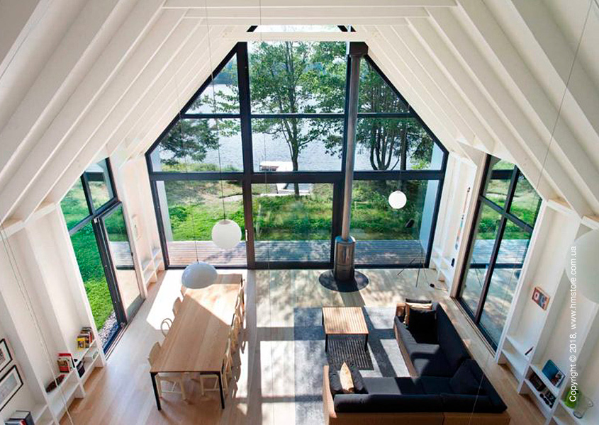 Вся южная сторона дома сделана из стекла, благодаря чему оттуда открываются живописные виды.