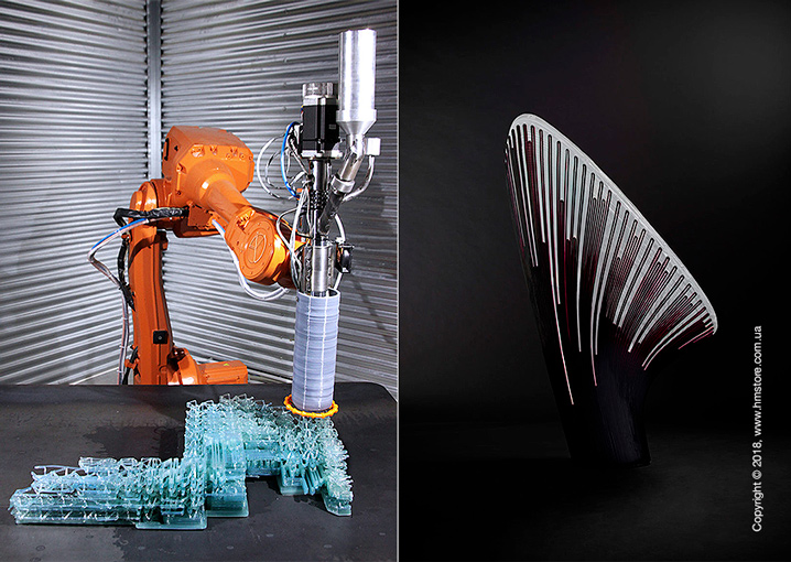 Стул «Peeler» от Daniel Widrig является современной версией стула-ракушки. Имея три волнистые поверхности, «Peeler» может быть создан на 3D принтере всего за несколько часов, при этом оставляя минимум отходов и соответствуя эргономическим ограничениям человеческого тела, а также эргономики роботизированной руки, которая его создает.