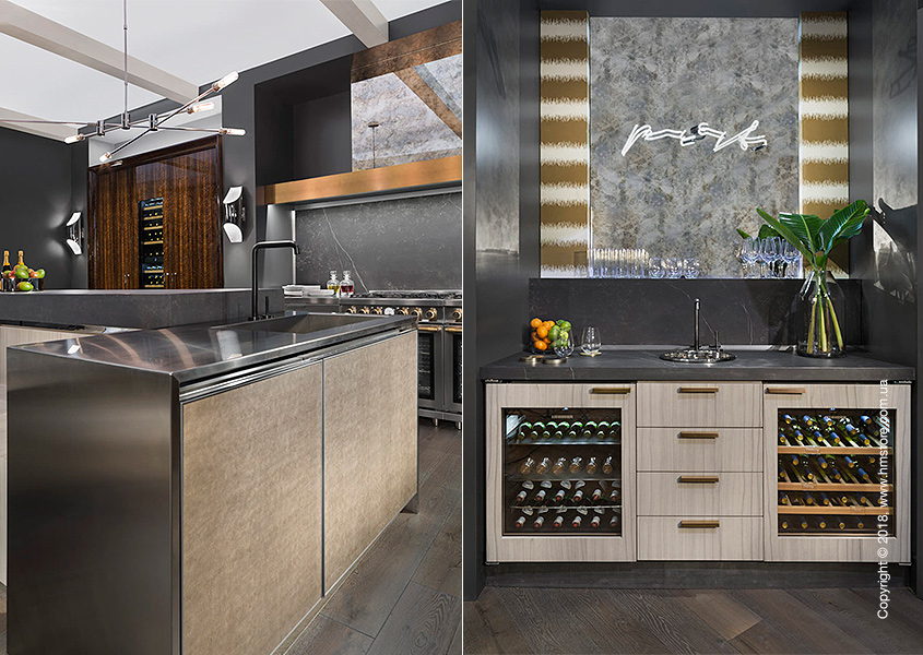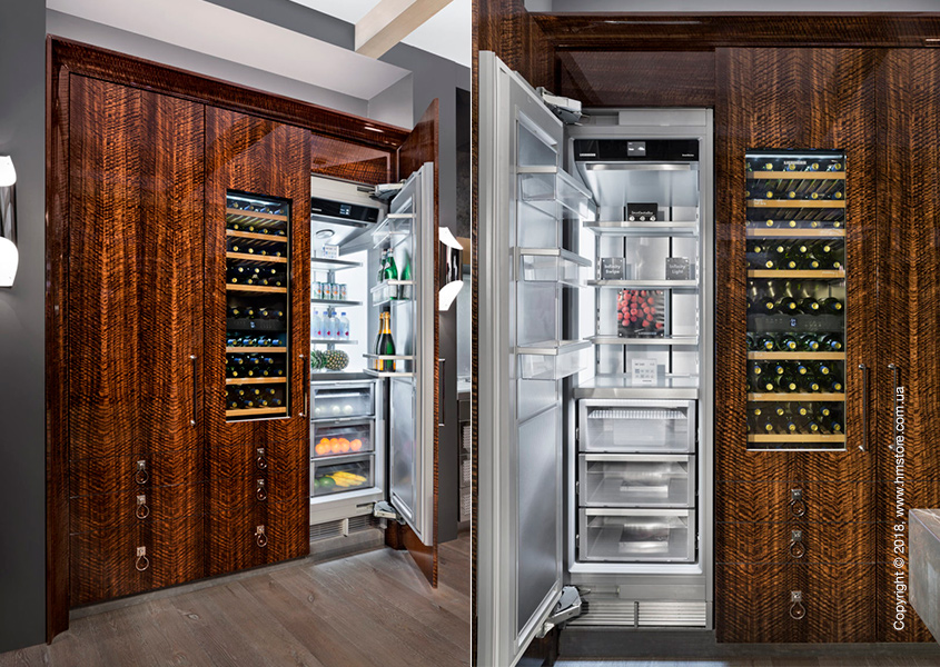 Два холодильника Monolith Column и две морозильные камеры Monolith Column, а также встроенные холодильники для вина и ящики для напитков гарантируют, что никто не останется голодным или жаждущим. Этот набор техники встроен в шкаф из мореного эвкалипта от Premier Custom Built Cabinetry.