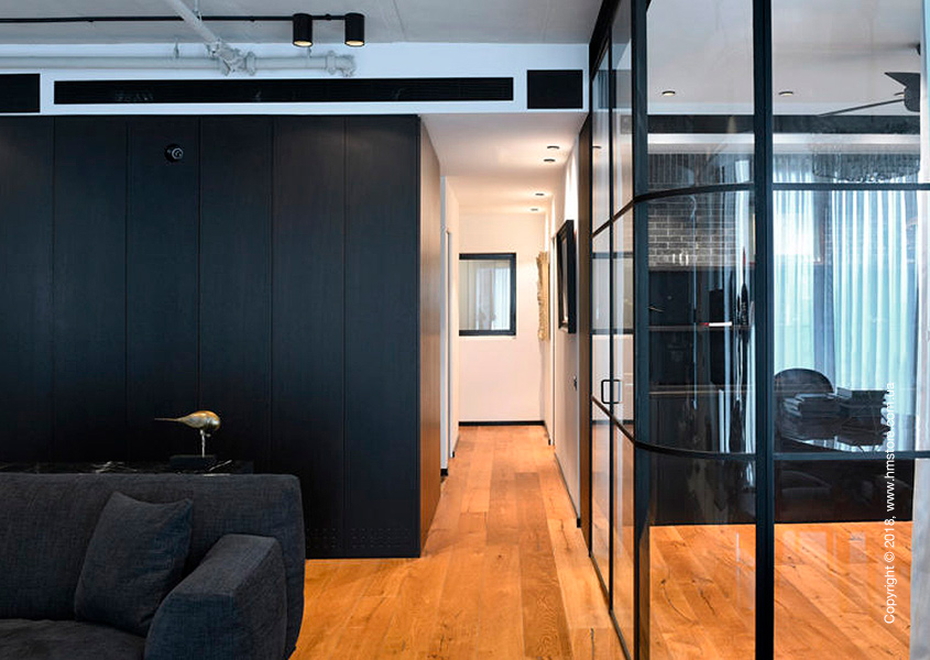 Расположенная в новом здании в центре Тель-Авива (Израиль), квартира «Tower Apt. No1» занимает площадь 100 кв.м. Изначально она была пустым недостроенным пространством, большая часть периметра которого занимали окна от пола до потолка. После того, как эту квартиру купила молодая пара, они наняли «RUST architects», чтобы сделать ее пригодной для жизни, с высокофункциональной планировкой и интерьером в стиле лофт.