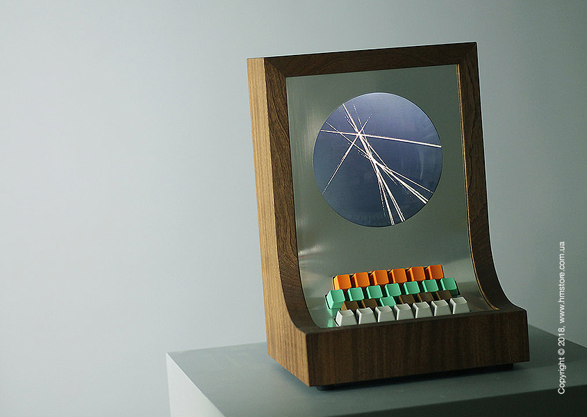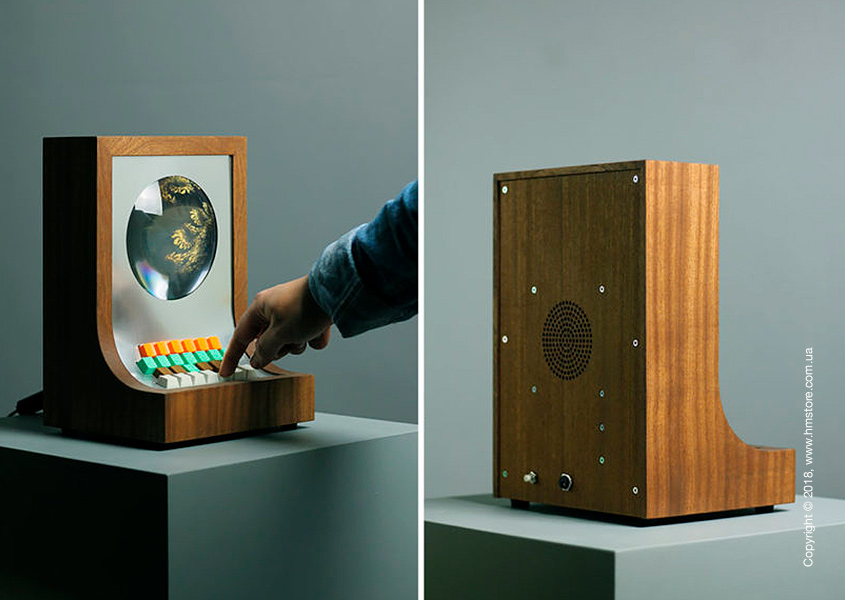 Echo Observatory V2 – это частично музыкальный инструмент, и частично экранная заставка. Это устройство приглашает пользователя визуально исследовать бесконечный ряд математически генерируемых узоров на выпуклом «иллюминаторе» экрана с помощью неразмеченной, разноцветной клавиатуры. Все это довершается возможностью приближать, панорамировать и вращать.