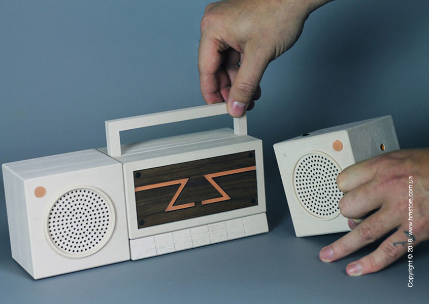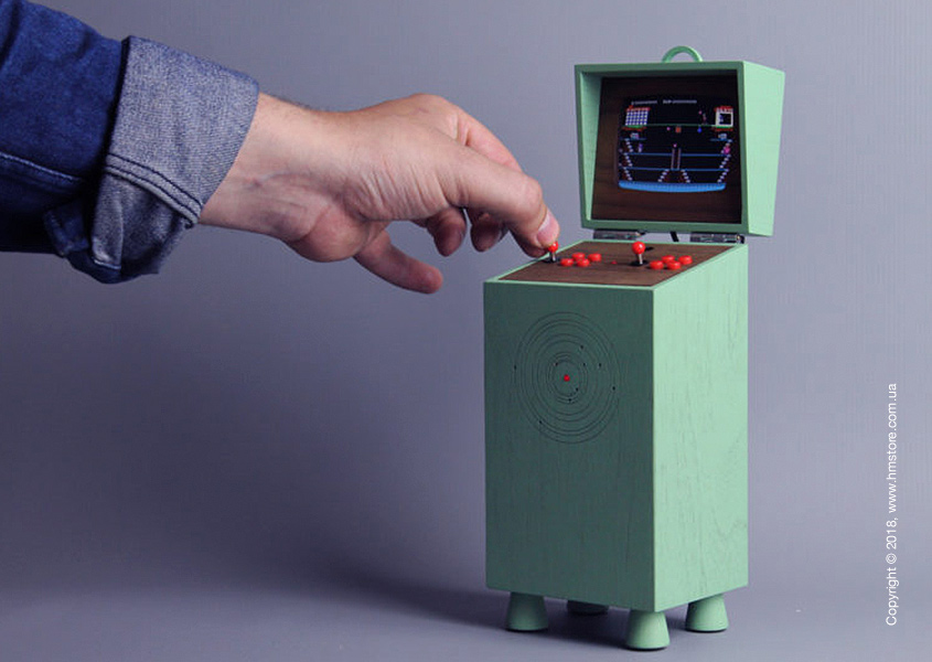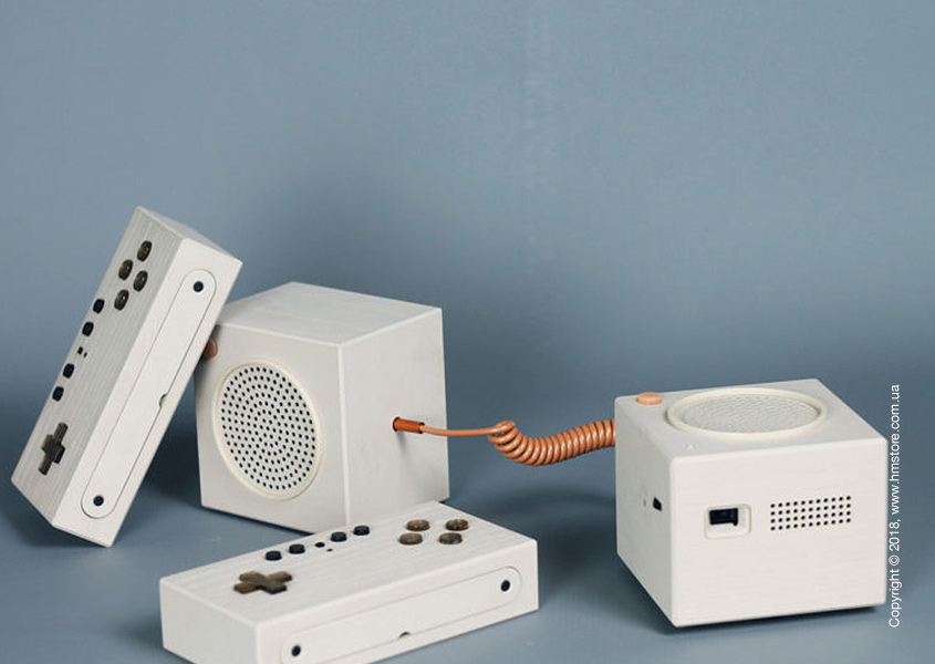 Тем, кто вырос в доцифровую, аналоговую аудиоэпоху кассет, наверняка понравится этот необычный бумбокс. Узнаваемые формы состоят из 4 предметов, формирующих многофункциональную игровую консоль, включающую два беспроводных джойпада, стереоколонки и встроенный проектор, позволяющий играть абсолютно везде. Библиотека игр насчитывает более 10 тыс. названий из каталогов NES, Atari 2600, Game Boy и других старых систем.