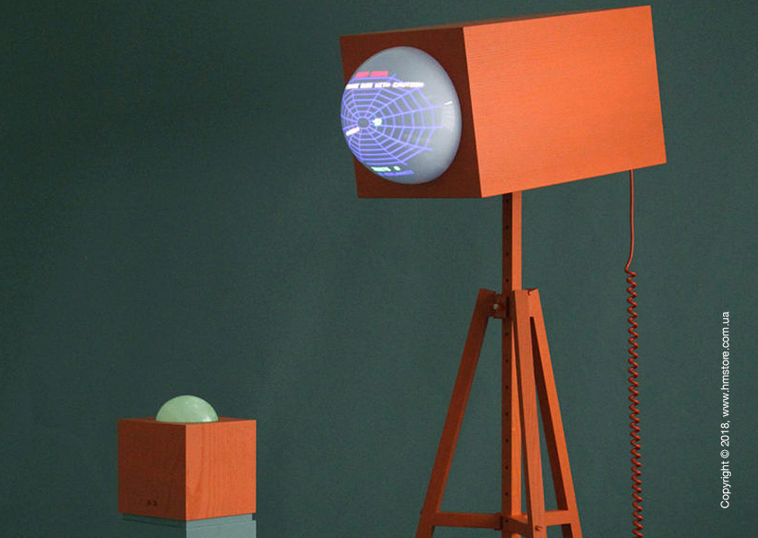 BOB180 выглядит довольно загадочно на первый взгляд. Лампа? Телевизор? Камера? С помощью простого переключателя экран в виде полусферы, расположенный на штативе, начинает светиться, раскрывая свою цель – это совершенно необычная игровая система. Игроки управляют с помощью беспроводного трекбола из белого кварцевого кристалла, из-за чего появляется необычное взаимодействие с этой игровой консолью.