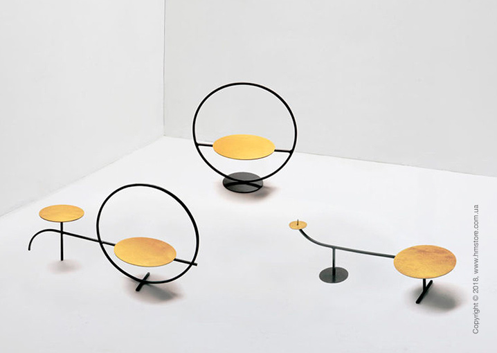 «Adelina» – это серия предметов, которые являются игрой с геометрическими формами и линиями. Они отличаются контрастными отделками в черном и золотом цвете. Золотой диск кажется подвешенным, и может быть использован для хранения разных предметов. Свое название эта коллекция получила в честь бабушки дизайнера, с которой он ассоциирует приятные семейные обеды.