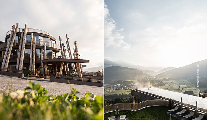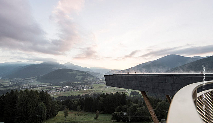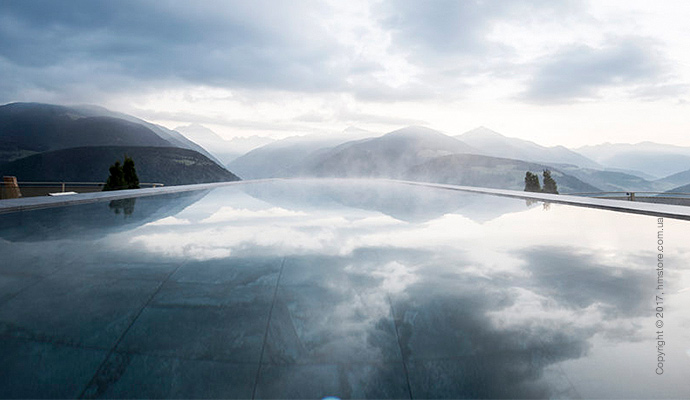 Окунуться в великолепную воду в Италии можно не только на острове Капри. Поплавать можно и в «Hotel Hubertus» – современном отеле, расположенном у подножья горы Кронплатц в районе Пустерталь в муниципалитете Вальдаора. Этот новый бассейн был создан «noa*» (расшифровывается как «сеть архитектуры»). Он дарит посетителям ощущение, что они плавают между небом и землей посреди Доломитовых Альп.