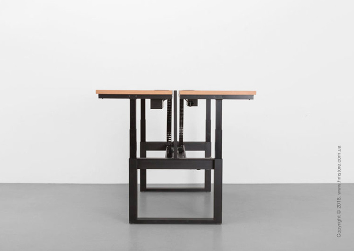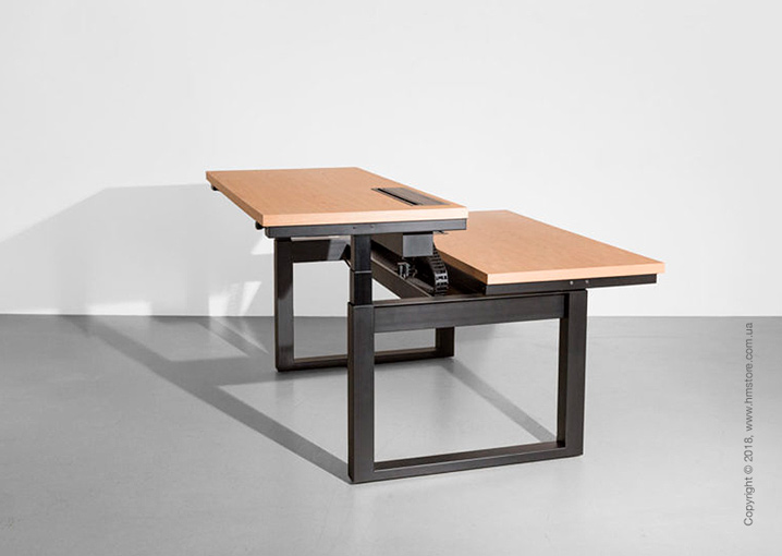 Стол «MINIM RISESIT|STAND» оснащен мощной электронной системой подъема, которая встроена прямо в прочное стальное основание и, следовательно, скрыто. Он может также идти в версии с двумя столешницами, зафиксированными на разной высоте, с двумя подъемными столешницами или же с одной из столешниц, которая может подниматься, в зависимости от предпочтений работников.