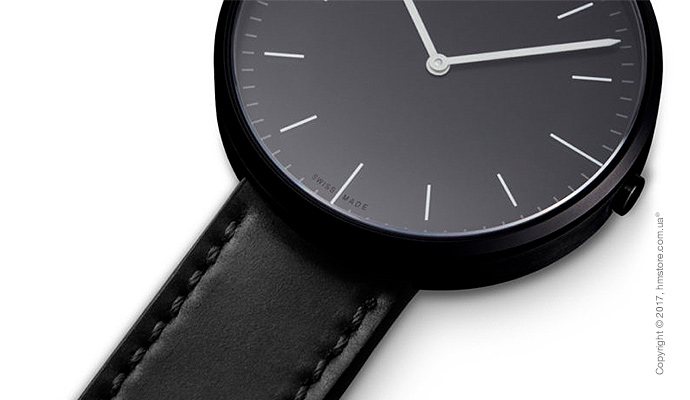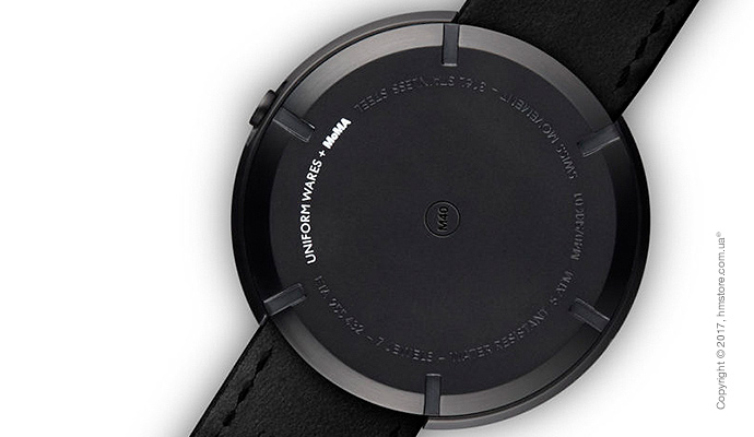 Часы имеют стандартный циферблат с двумя белыми стрелками на фоне, доступном в семи вариациях черного и серого цветов. Корпус выполнен в черном матовом цвете с матированным желобком. На задней стенке часов выгравировано название «Uniform Wares + MoMA» с белым эмалированным наполнением.