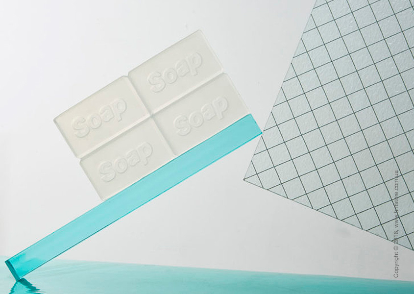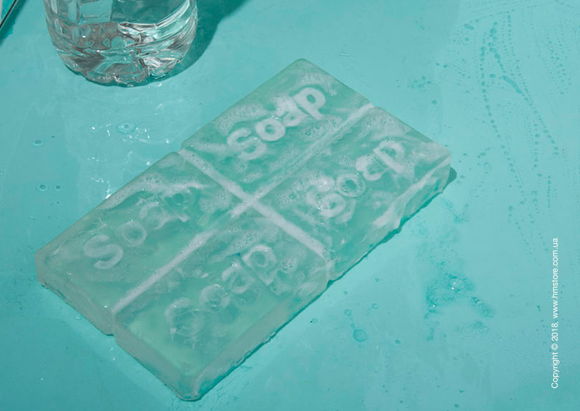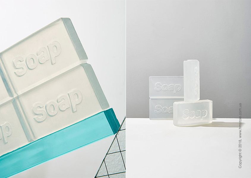 «Soap» – это обычное глицериновое мыло без красителей и ароматизаторов, которое вылито в форму блока, разделенного на 4 отдельных кусочка. «Soap» отличается тем, что в этом мыле есть только ингредиенты, необходимые для выполнения своих функций, и нет абсолютно ничего ненужного. Его главный посыл заключается в том, что каждый предмет может быть максимально упрощен, чтобы делать и нашу жизнь проще.