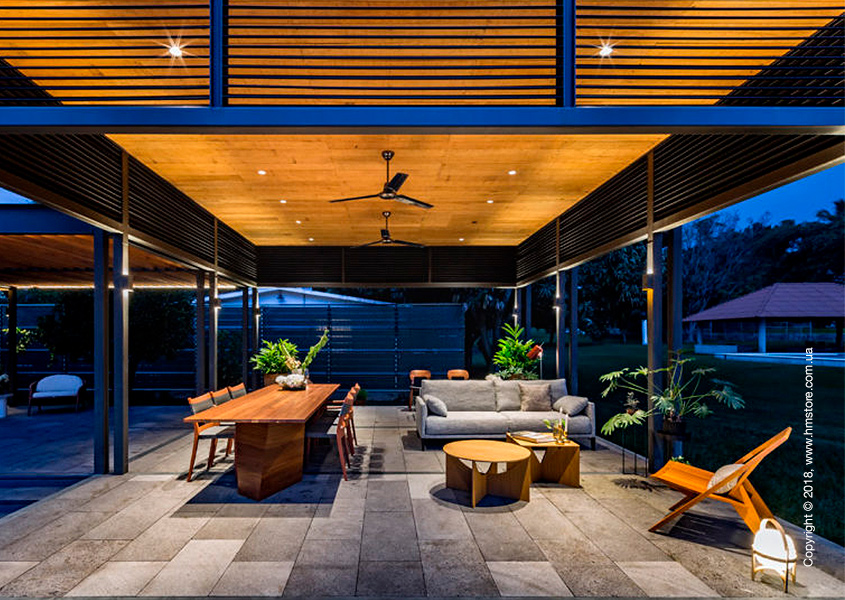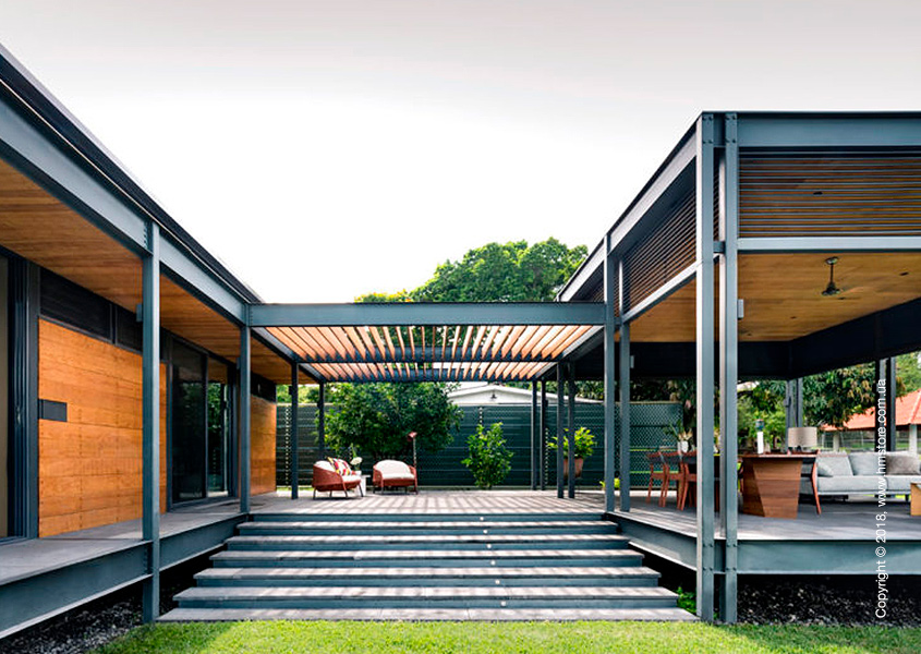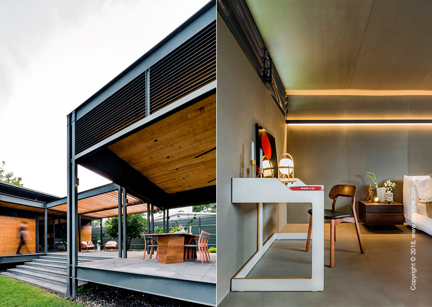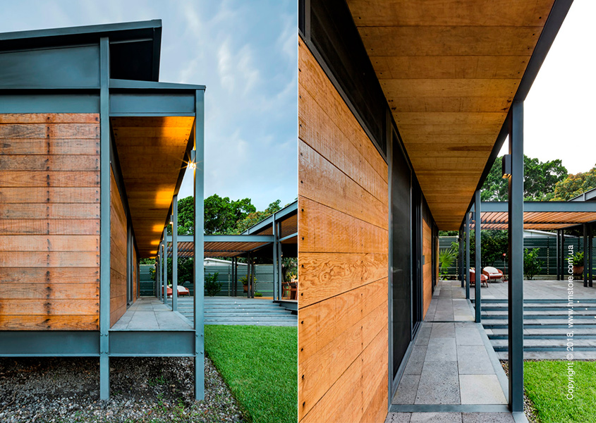 Жилье состоит из модулей размером 7,2 х 2,4 м, что позволило транспортировать их по обычным дорогам. Внутри дома находится две спальни, две полноценные ванные комнаты и крытая терраса, которую можно использовать круглый год.