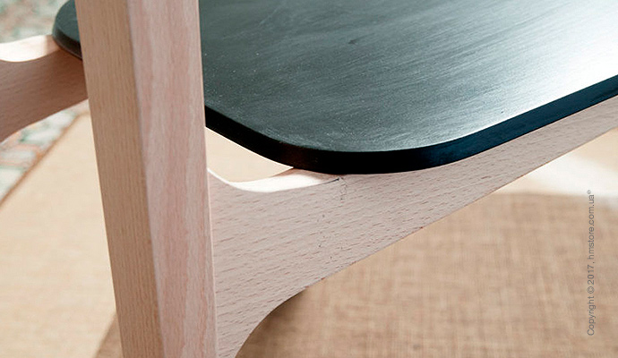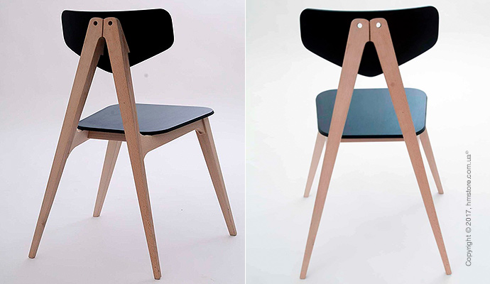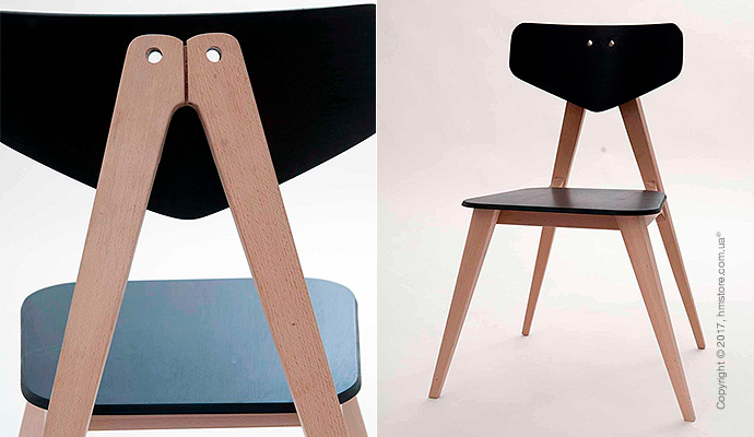 Спинка крепится к прочным дубовым ножкам, а в том месте, где вы будете ожидать каких-либо креплений, вроде болтов, вы увидите два отверстия. Соединения же скрыты внутри. Таким образом, стулья, на которые обычно смотрят со спины, когда они приставлены к столу или когда на них кто-то сидит, не будут испорчены неприглядными деталями.